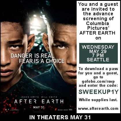 AFTER EARTH is rated PG-13 for sci-fi action violence and some disturbing images. Seats are first come, first served. Two passes per person. Each pass admits one. No phone calls. While supplies last. Employees of all promotional partners and their agencies are not eligible. NO PURCHASE NECESSARY.