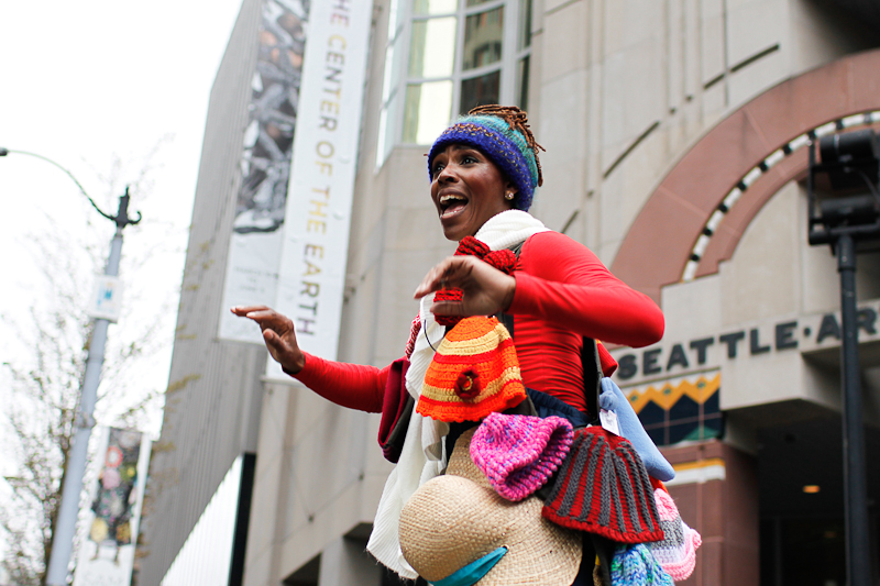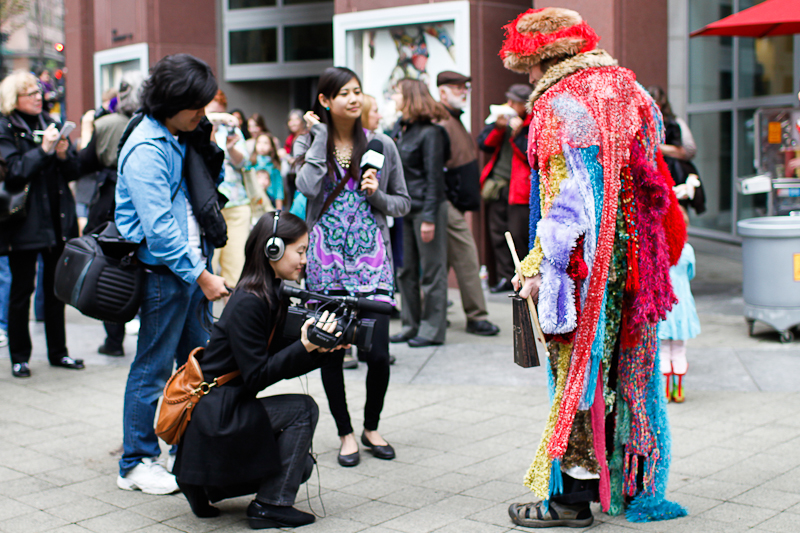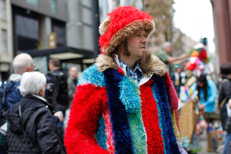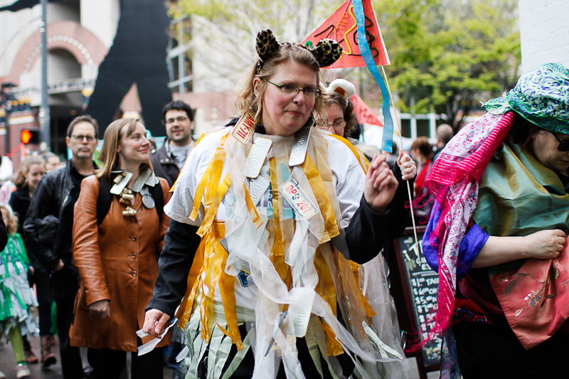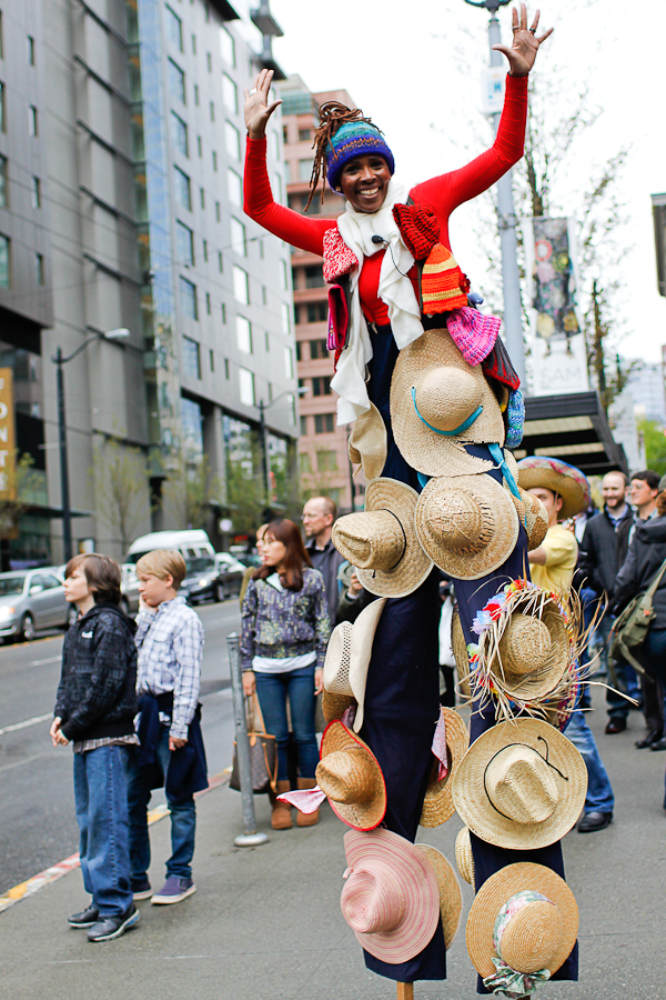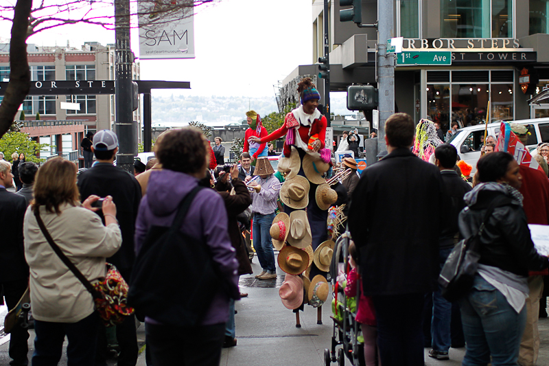 Cinco de Mayo got a lot brighter last night when Nick Cave and his soundsuits went on parade in downtown Seattle. Many participants sported soundsuits of their own, created in SAM’s Chase Open studio. You really just can’t help but smile when the soundsuits come out. We wish they could stay forever.Photos by Mohini Patel Glanz.Published on May 6, 2011