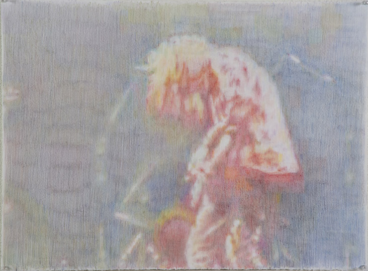 Gretchen Bennett reimagines iconic images of Kurt Cobain in shadings of colored pencil for this drawing series entitled “Hello” (a nod to the chorus of “Smells Like Teen Spirit”). She took video footage from YouTube (including a memorial created by Krist Novoselic for MTV) and Gus Van Sant’s Last Days, made slides of the images, then projected the slides onto her studio wall, where she traced out a series of light-saturated drawings. Read more about the show at Howard House here.Published on March 13, 2008