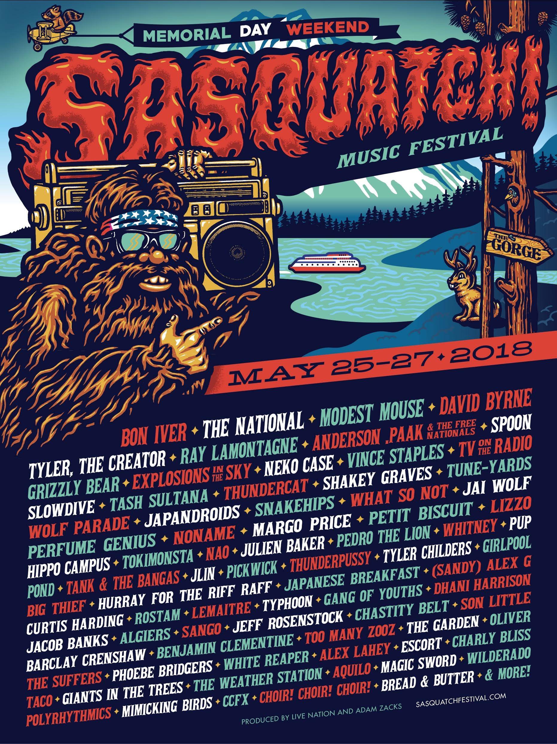 Three day passes for Sasquatch! Festival 2018 go on sale this Sat., Feb. 10 at 10 a.m via Ticketmaster. Weekend passes cost $325. (Single day tickets will only be made available if the passes aren’t selling.) Gorge camping is sold separately for $60–$499.