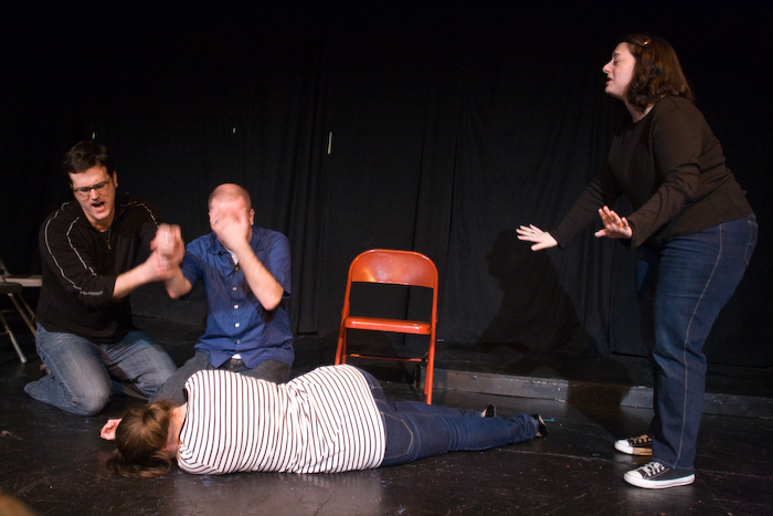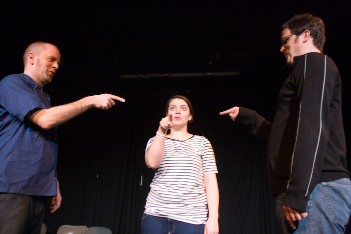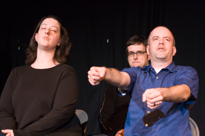The Blood Squad created another improvised horror masterpiece at the Odd Duck Studio Saturday, March 14. A month after Valentines Day, the Squad’s wrapping up their I Won’t Be Ignored psycho-love themed flicks. Tonight’s feature presentation, as suggested by an audience member, Dark Bouquet. All photos by Garrett MukaiPublished on March 16, 2009