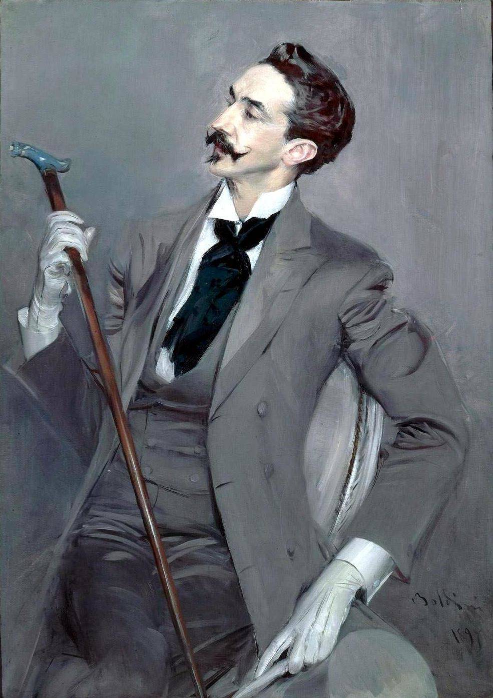 “Jeez, he looks familiar,” I thought at first glance of Brandon J. Simmons, a cast member in Book-It’s production of Oscar Wilde’s The Picture of Dorian Gray. Not because I’d seen him elsewhere on- or offstage, though he keeps busy in Seattle as an actor, director, and writer. I recognized Simmons from a book cover: a paperback edition of Wilde’s plays, which turns out to be a portrait of poet Robert de Montesquiou (1855–1921). Draped over a round-backed chair, impeccably dressed and mustachioed, with an air of amused hauteur—it’s too deliciously similar to be coincidence. Isn’t it?