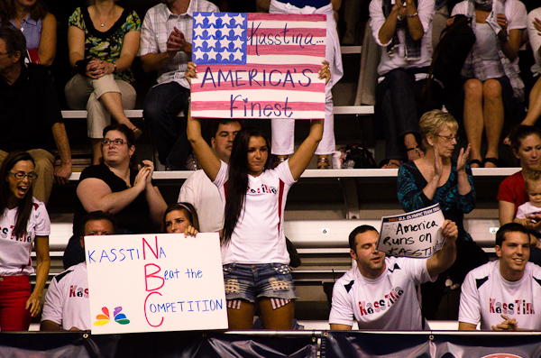Friends, family, and fans all came out to support their divers. This group is supporting Kassidy Cook and Christina Loukas of Woodlands Diving Academy.