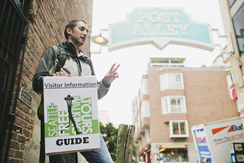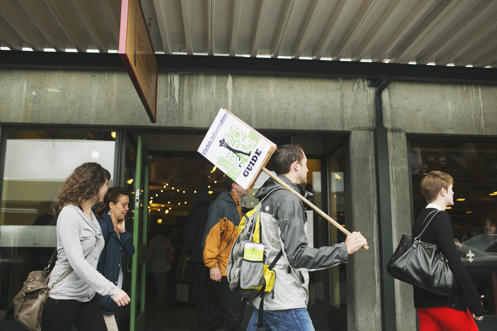 “The weather for a walking tour, this May morning, is like we’d ordered it off a menu: brilliant sunshine and about 65 degrees, not too warm for the two-and-a-quarter-hour hike ahead of us. Jake Schlack, proprietor and upbeat conductor of Seattle Free Walking Tours, launched the tour with his business partner Nathan Haslip just this spring, inspired by the similar walking tours in European cities he discovered on his honeymoon. They run (entirely on donation, $15 suggested) daily–except legal holidays–at 11 a.m.”Read the rest of Gavin Borchert’s feature here.Photos by Chantal Andrea.Published on June 1, 2012