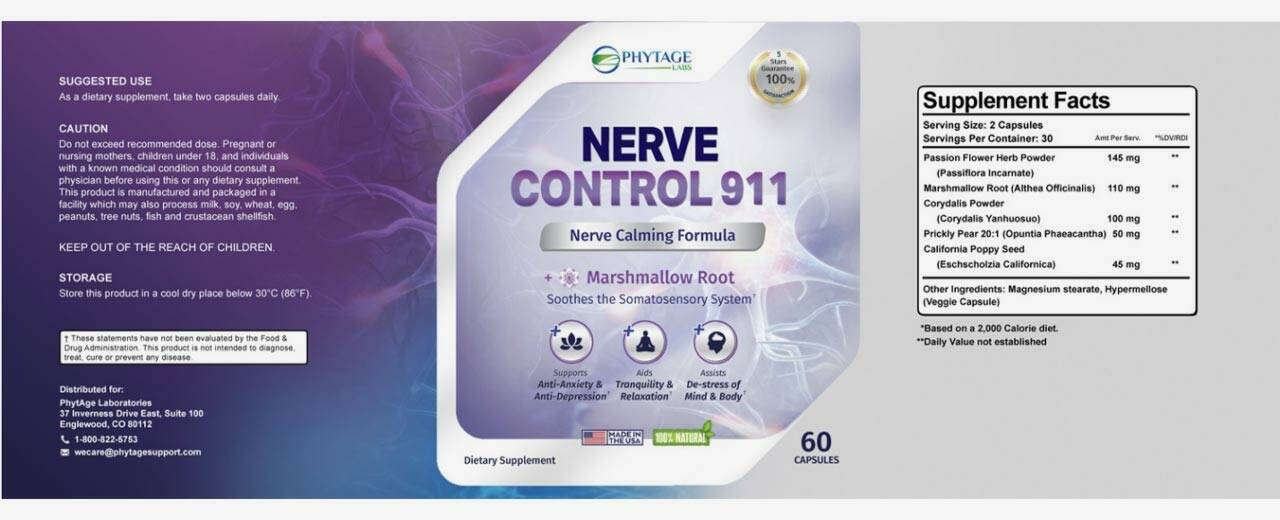 Nerve Control 911 is made by a PhytAge Laboratories company, which claims the supplement can provide a range of powerful benefits. PhytAge Labs claims Nerve Control 911 can improve your muscles, reduce inflammation, curb insomnia, lower anxiety, lower blood pressure, and provide other benefits.