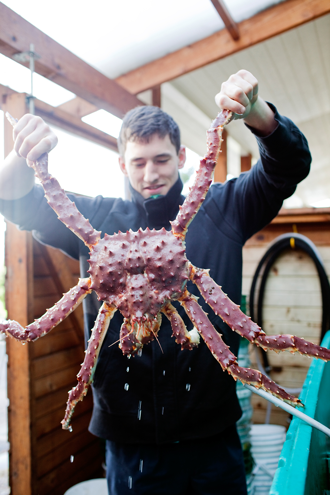 Yet none of this prepared me for the experience at The Willows Inn. Hours before the 6:30 dinner seating, we’re lounging on the deck of one of the Inn’s separate cottages—about a mile down the road, situated so close to the great, open expanse of the Sound that we watch a young seal gliding its slick body through the sea while an otter lumbers onto shore 20 feet from us. I begin to understand the fuss Ray made over his year living here. I spot a large Dungness crab off the pier and watch a terrifyingly big jellyfish undulate near the rocky beach, haphazardly strewn with beautiful, gray-washed driftwood. The sky is clear and the sun still warm. I feel a peace I haven’t in a long time.