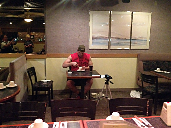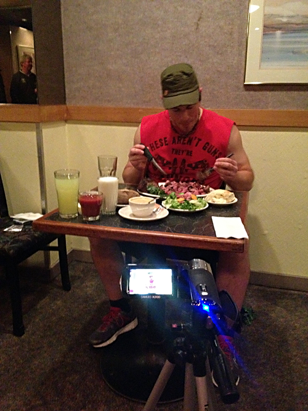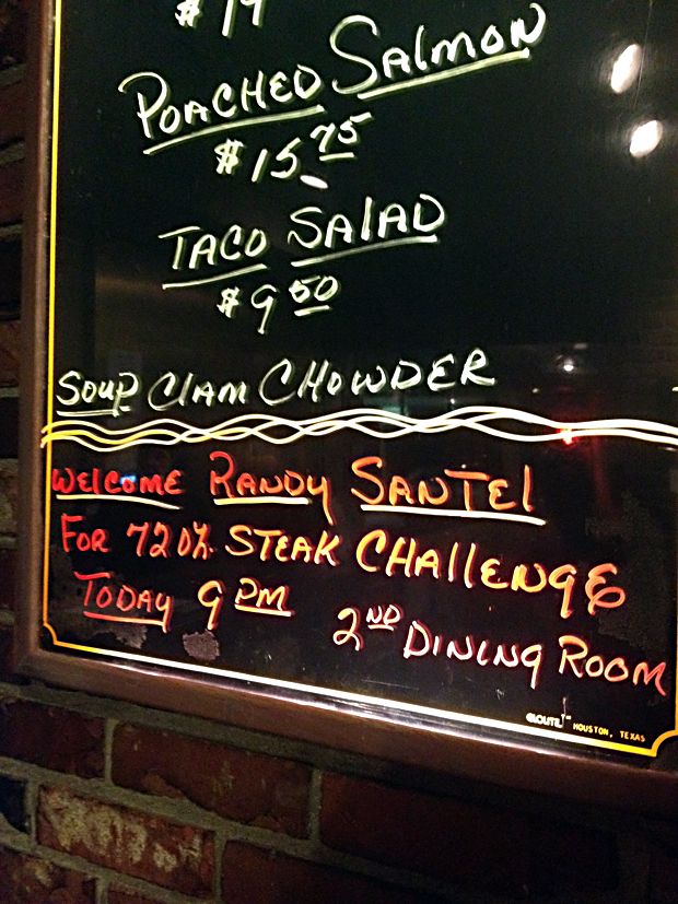 “All the money in the kitchen was riding on Santel becoming the first person ever to complete the 47-year-old restaurant’s hour-long eating challenge: Only the cook who had handled the massive steak, imagining the stresses it might inflict on a practiced jaw and iron gut, had bet against him.”Read the rest of Hanna Raskin’s feature story here.Photos by Hanna Raskin and Randy Santel.Published on May 11, 2012
