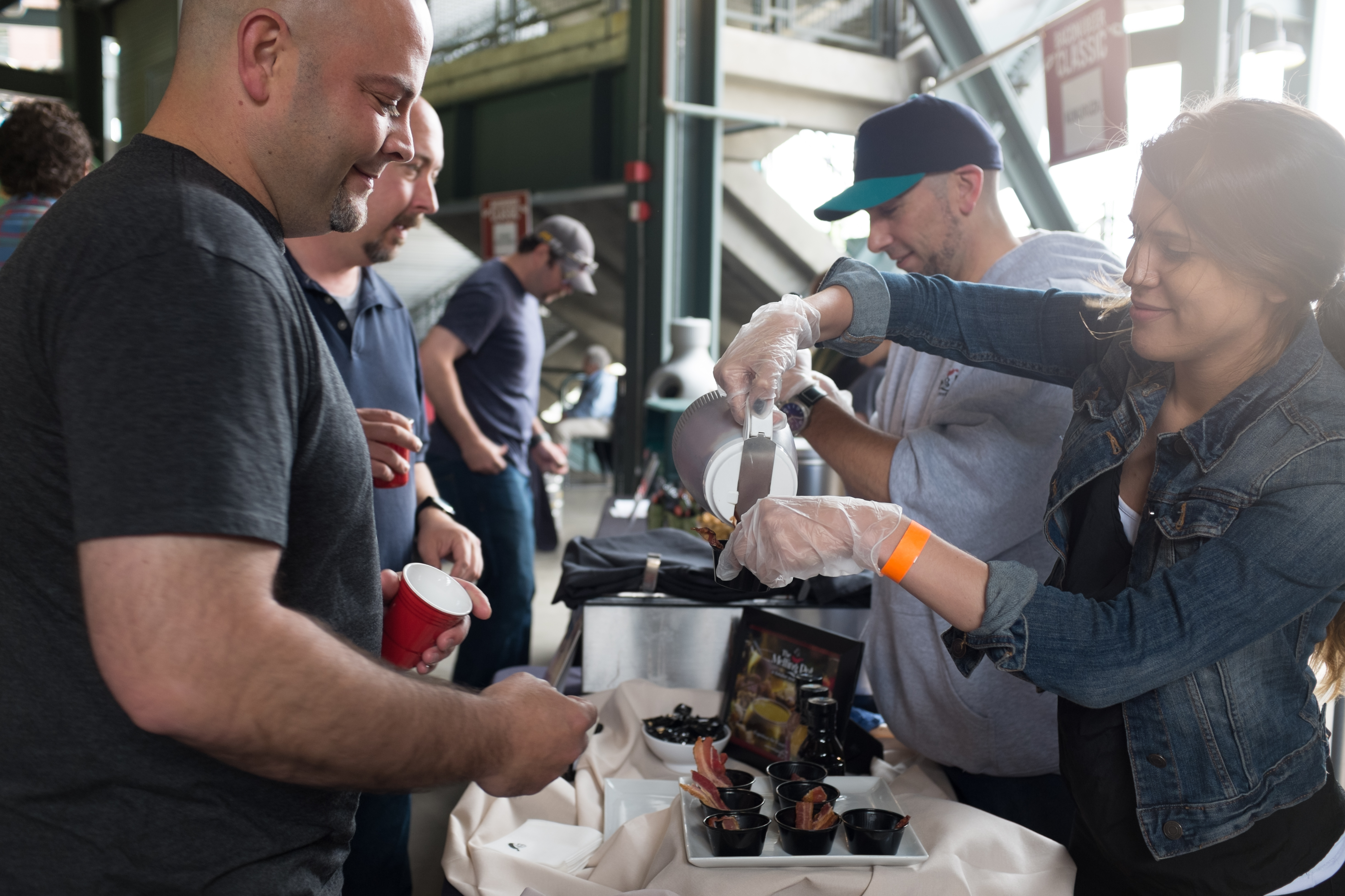 With the purchase of a ticket, attendees were provided with a small sample-sized ceramic mug (molded into the likeness of a red Solo cup), which bore the Beer and Bacon Classic’s logo. The event was all-inclusive, and attendees were given punch cards that entitled them to 25 beer samples and 25 food samples. However, lines were generally long enough that it would have been a challenge to fill out the entire card. A VIP pass, available at extra cost, allowed attendees to skip the lines entirely.