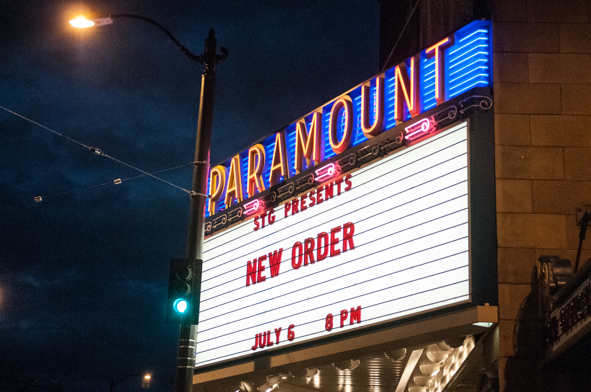 It was the biggest crowd the Paramount has seen in quite a while. Even though the show was sold out, it never felt crowded (whether that’s because of no-shows or if people would rather hang at the bar than watch the show), and many were out on the floor. Despite the packed house, there seemed to be just enough room between clusters of fans to dance the night away, and dance so many did. It took a little time for the normally subdued Seattle crowd to start moving, but by the time “True Faith” floated across the room, most had their arms up, inhibitions to the wind. If you were there and didn’t leave the Paramount last night sweating, tired, and with a smile plastered on your face, you did it wrong.