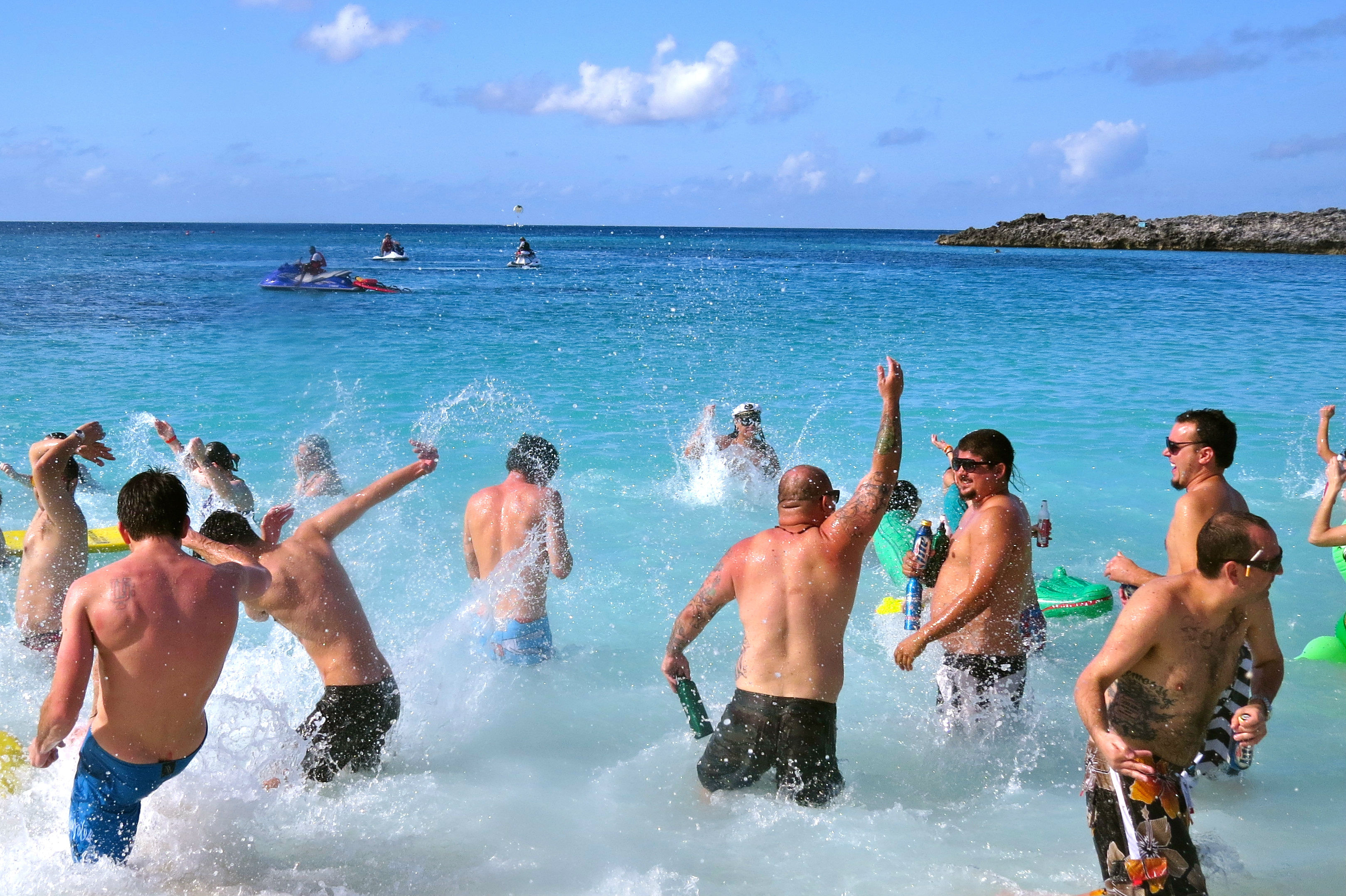 Attendees of Hard’s electro party cruise Holy Ship!! spent Sunday afternoon on a private island in the Bahamas getting wet and wild on the beach. Partiers were ferried from the MSC Poesia to the island where they enjoyed sets by Destructo, Brodinski, Diplo and Justice. All photos by Katie Bain.See Also:- Best of the Holy Ship!! EDM Cruise- Holy Ship!! Wrap-Up: It Was the Best of Times….- A Dude’s Dream Comes True Aboard the Holy Ship!!- Holy Ship!! Day One: A Surprise Guest Whose Name Rhymes With DrillexPublished on January 8, 2013