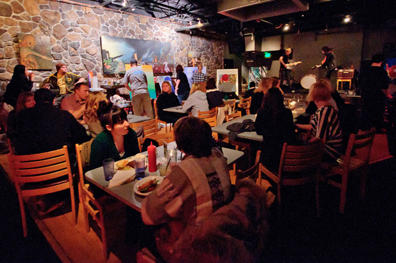 Last night’s Happy Hour for Hope at Highline Bar was a huge success! A boatload of folks came to hang out, listen to sets by No Rey and My Goodness, watch live painting by Art pARTies Seattle (featuring Best of Seattle winner, muralist Ryan Henry Ward, and Seattle Weekly’s very own Sharon Wilfong), eat some kickass vegan food and ultimately, raise money for Race for a Ride charities. If you weren’t there, well…in the immortal words of Pretty Woman, “Big mistake. BIG. Huge!’Photos by Stephen GiangPublished on January 13, 2011