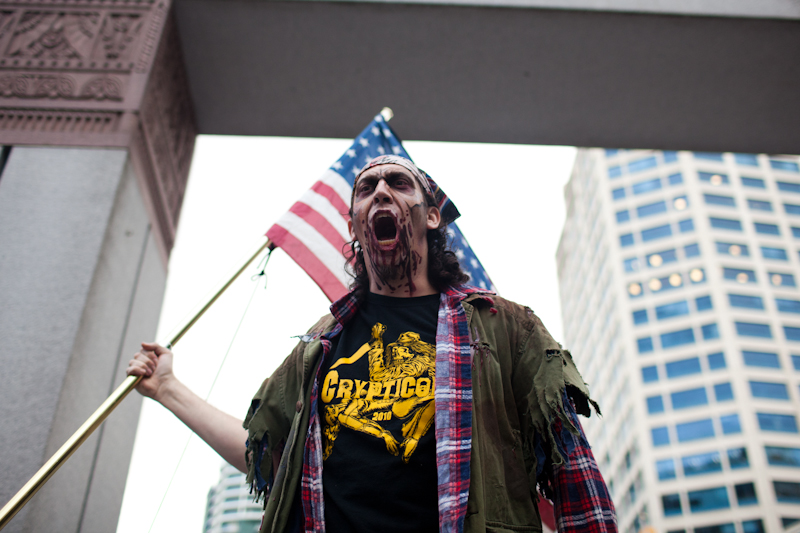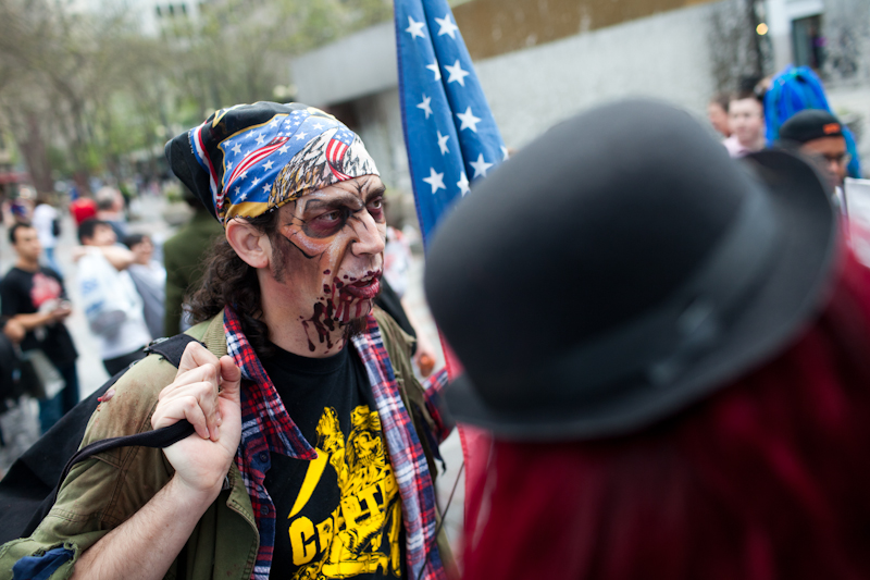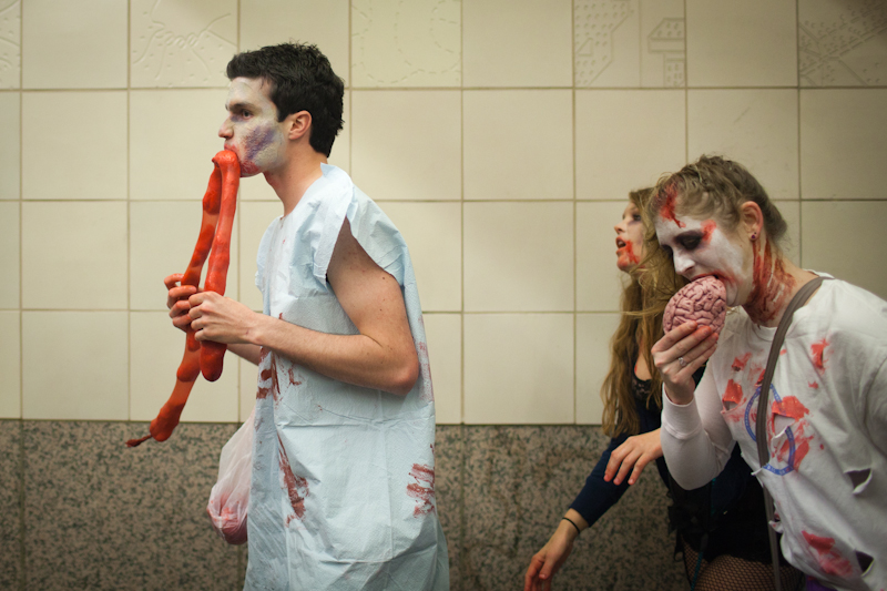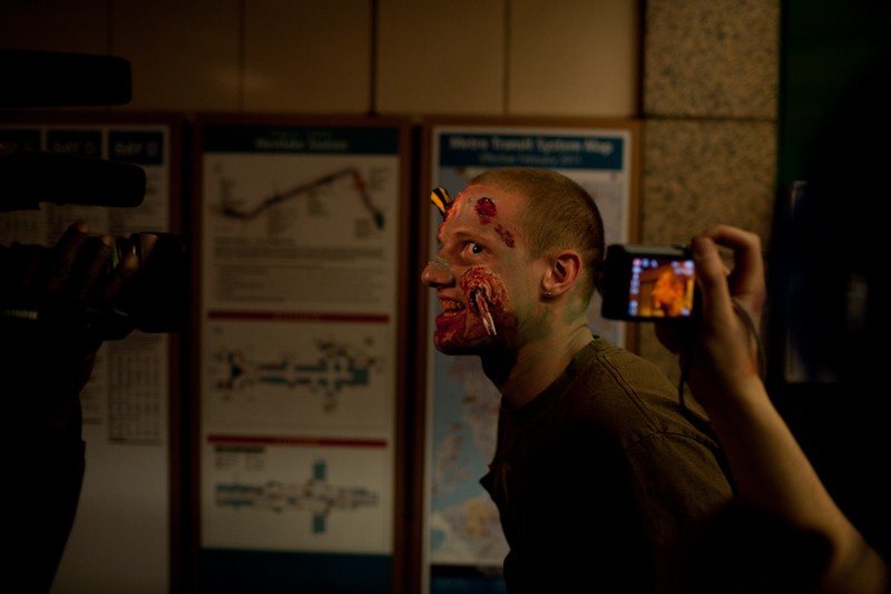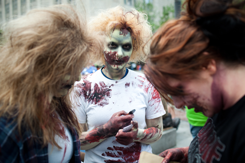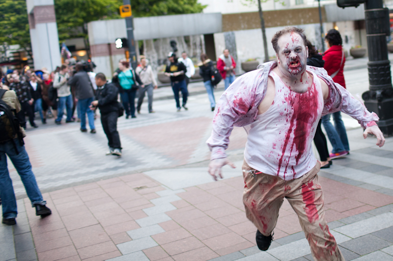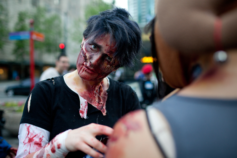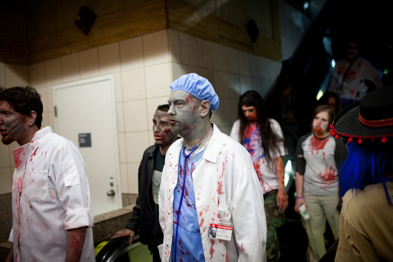 Friday light rail commuters were probably wondering if Memorial Day weekend was truly the end of times when the light rail was overrun with…zombies. Hundreds of zombies boarded trains and accompanied riders from Westlake to Sea-Tac. You have to wonder what visitors to Seattle thought as that train disembarked.Photos by Matthew Williams.Published on May 31, 2011