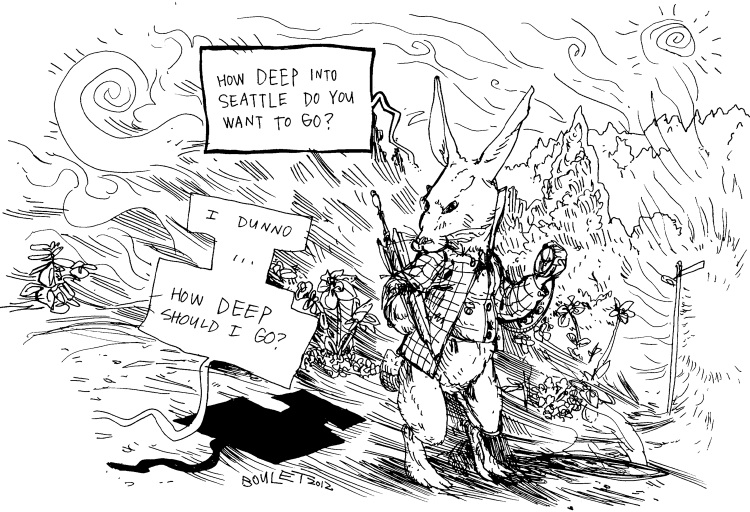 Illustrator Joshua Boulet has been stalking the streets of Seattle this fall,