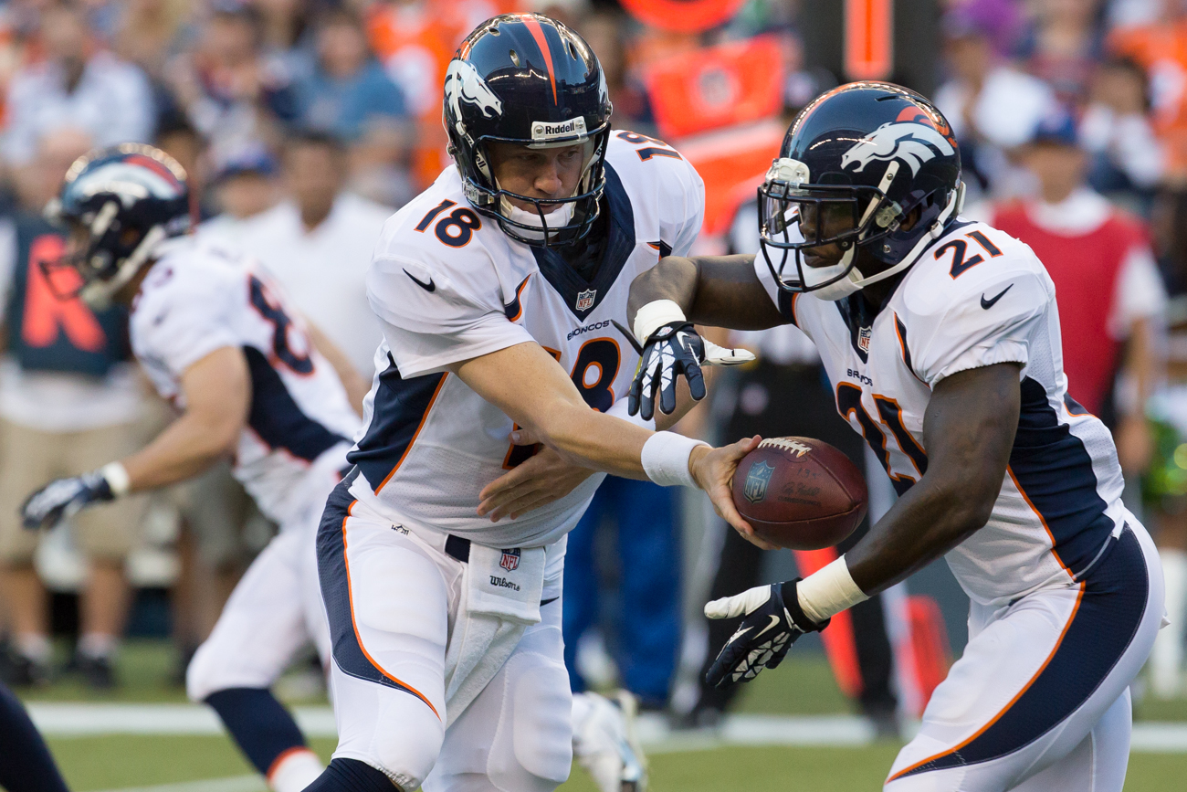 QB Wilson tries to shake off Broncos weak side linebacker Wesley Woodyard. Woodyard eventually won the chase, downing Wilson for a loss on the play.